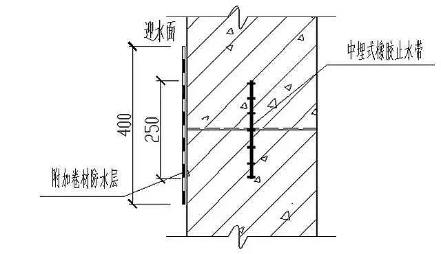 六、鋼板的凹面應朝向迎水面,轉角處止水鋼板應做成45°角。止水鋼板居中布置。橡膠止水帶及鋼板橡膠止水帶做法同上。