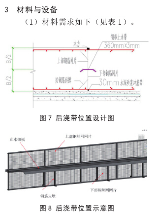 <6)混凝土澆筑過程加強后澆帶位置吊模看護,一經發現鋼絲網脫落、漏漿現象立即加固完善。