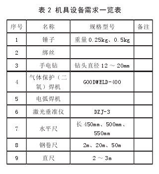 2)設備。各類機械設備進場安裝完畢后,必須經過有關部門檢測后方可使用,使用過程必須按照出廠使用說明書規定的技術性能、承載能力和使用條件正常操作(見表2)。