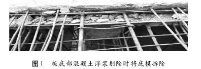 因為保護層的厚度小于混凝上粗骨料的粒徑,而后澆帶僅用隔斷鋼絲網將此處的混凝上斷開,在實際澆筑混凝上的過程中由于振搗的作用水泥砂漿在此處流失而集中了大量的粗骨料,拆模后蜂窩麻面嚴重,對于此處的抗滲、受力以及鋼筋銹蝕有較大影響。如在后澆帶封閉前將此處全部剔除,則需要將后澆帶底模板及支撐體系全部拆除,不僅結構受力不允許,而且施工作業較為困難、施工成本較大、施工時間延長(圖1)。