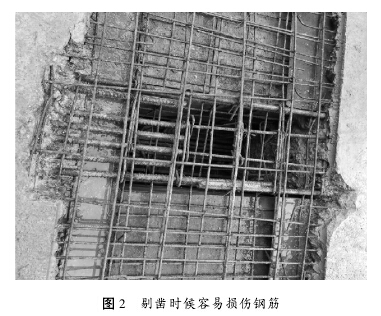 3、新舊混凝土接觸面鑿毛處理施工