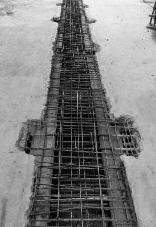 因為前期工期安排緊工序較為繁多,鑿毛剔打的工序是在封閉前才開始施工。如建筑工期較長則沉降后澆帶的封閉時間靠后。前后時間間隔較長加上施工中難免會有水接觸,長期處在潮濕環境中作隔斷處理的鋼絲網會嚴重銹蝕。最后在封閉沉降后澆帶時鋼絲網多數已嚴重銹蝕則需要全部用人工或者風鎬剔除。此種做法在工作面較為狹窄的同時需要借助動力機械經常會破壞止水鋼板以及從止水鋼板下穿過的管線,在板梁結合處無法同時保證結構和抗滲的要求,傳統施工方法在此處既不經濟又費時還難以保證質量。