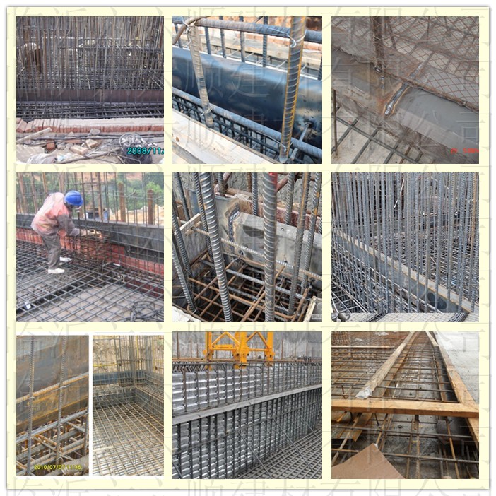 6、止水鋼板穿過柱箍筋時,可以將所穿過的箍筋斷開,制作成開口箍,電焊在鋼板上止水鋼板穿過剪力墻時,可以將所穿過的拉勾斷開,然后把兩端的拉鉤焊接在止水鋼板上。止水螺桿穿過剪力墻的時候,先保證止水螺桿的位置,然后盡量再保證剪力墻鋼筋的位置。