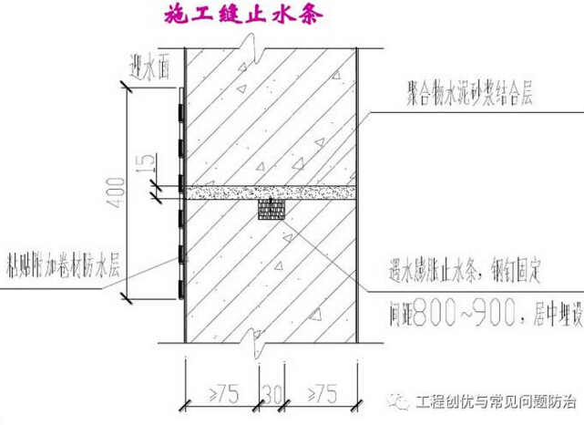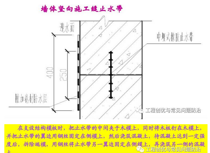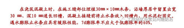 施工單位為了方便,往往喜歡用止水條,在基礎澆筑完成時,壓在墻砼澆筑的表面即可。