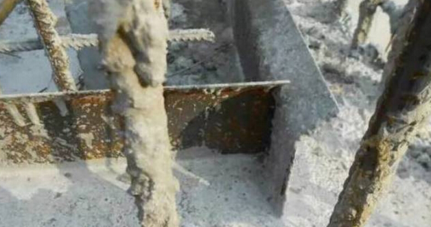 規范要求,使用止水鋼板的剪力墻,墻體厚度不宜小于250㎜,止水鋼板與鋼筋間凈距離為:墻厚/2-外側保護層厚度50-墻體雙向鋼筋直徑;當墻體厚度為250時,250/2-50-30=45㎜。止水鋼板與墻體間距離偏小,施工時混凝土在該部位容易漏振,形成蜂窩孔洞。因此,在使用止水鋼板時,在施工縫部位必須加強振搗。